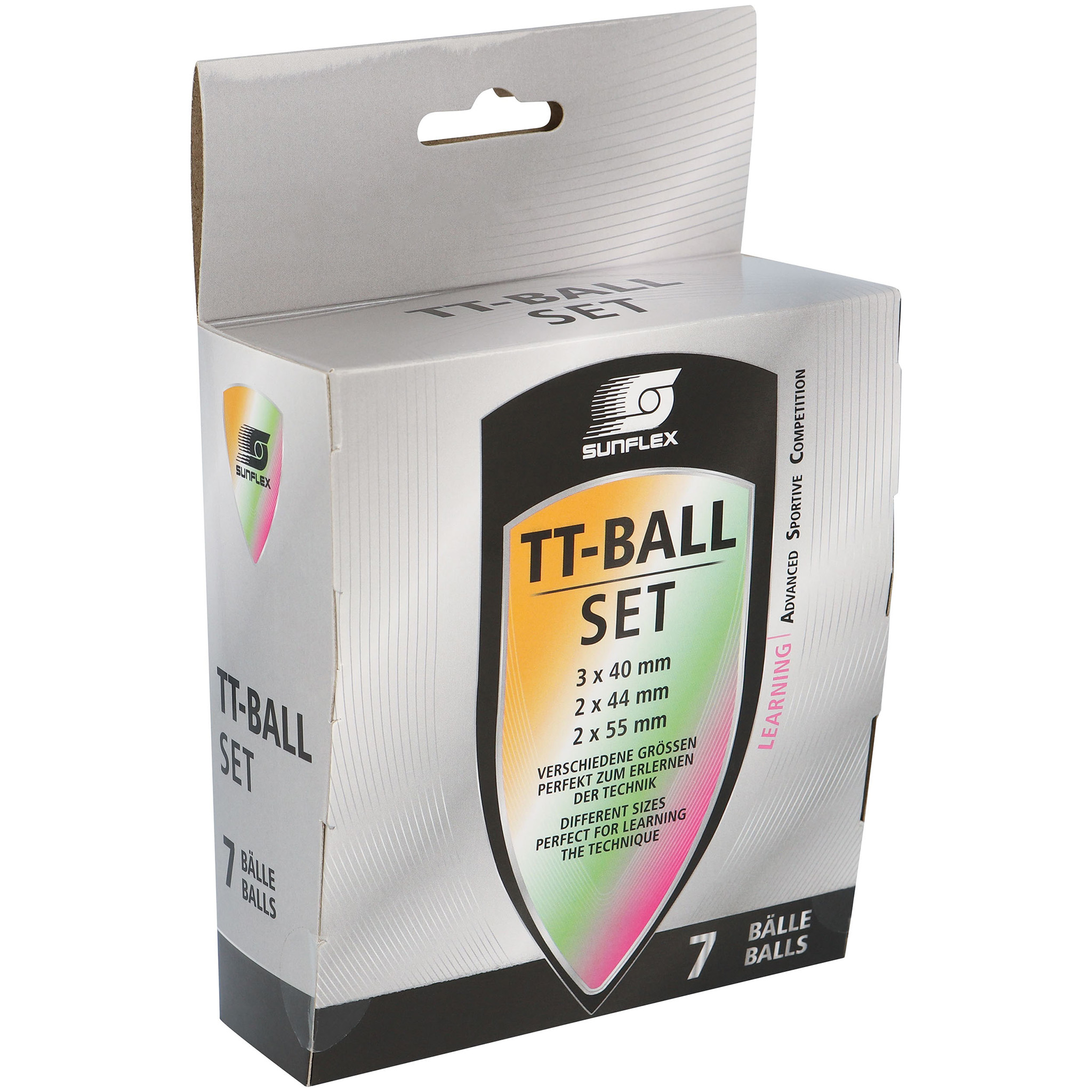 Μπαλάκια Ping Pong από την εταιρία Sunflex σε διάφορα χρώματα. Κατάλληλα για πιο έμπειρους χομπίστες ή προπόνηση παικτών. Το σετ αποτελείται από 3 μπαλάκια διαμέτρου 40mm (το στάνταρ μέγεθος), 2 τμχ. διαμέτρου 44mm και άλλα 2 τμχ. διαμέτρου 50mm (βάρους 2,7-3gr), ιδανικά για εκμάθηση των βασικών τεχνικών και πιο “fun” παιχνίδι.