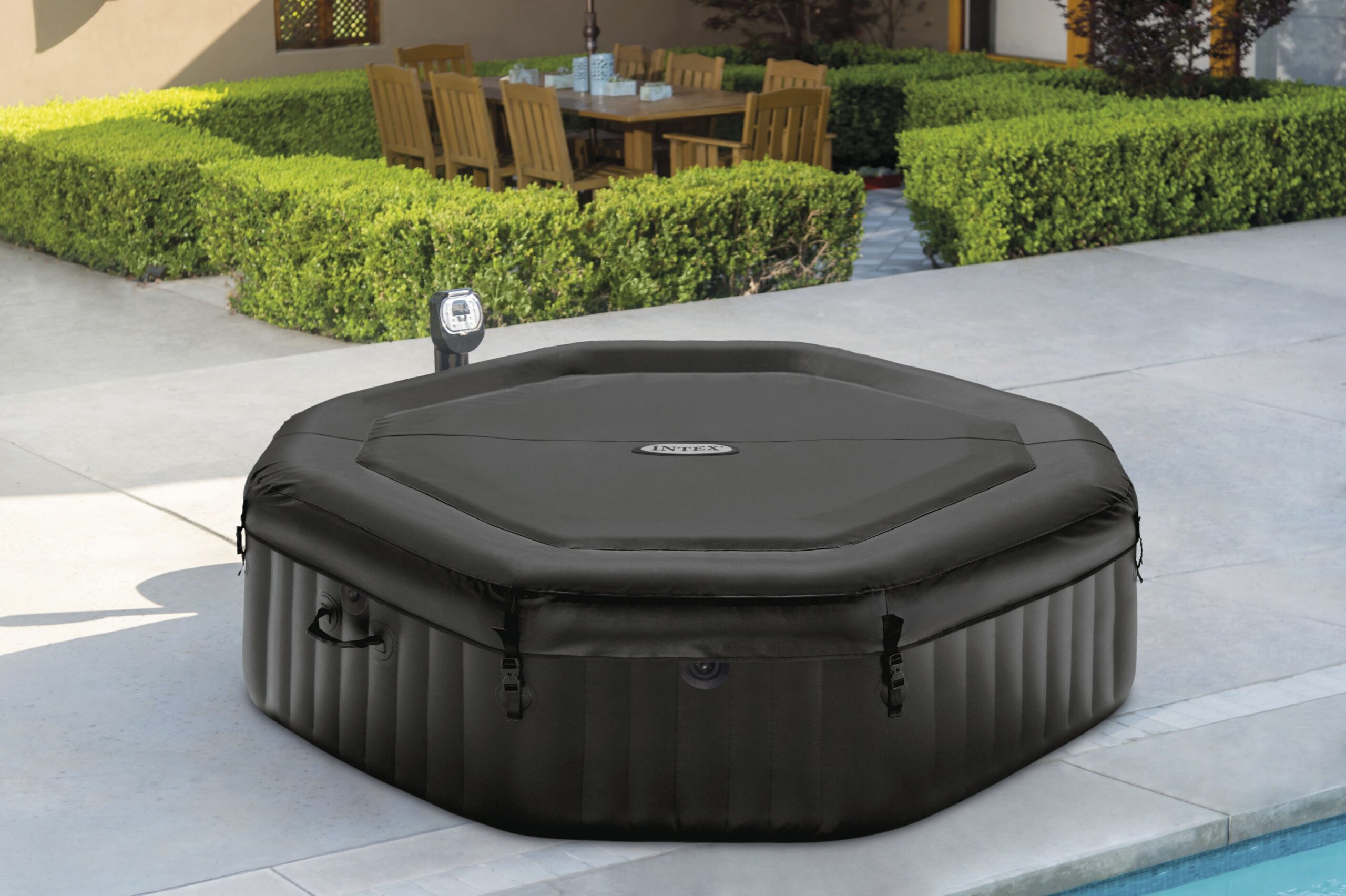 - Με κομψό,μοντέρνο οκταγωνικό σχεδιασμό και πάνελ ελέγχου (κονσόλα) για εύκολο χειρισμό,συνδυάζει την αισθητική με την πρακτικότητα και την κορυφαία αντοχή της Intex®.