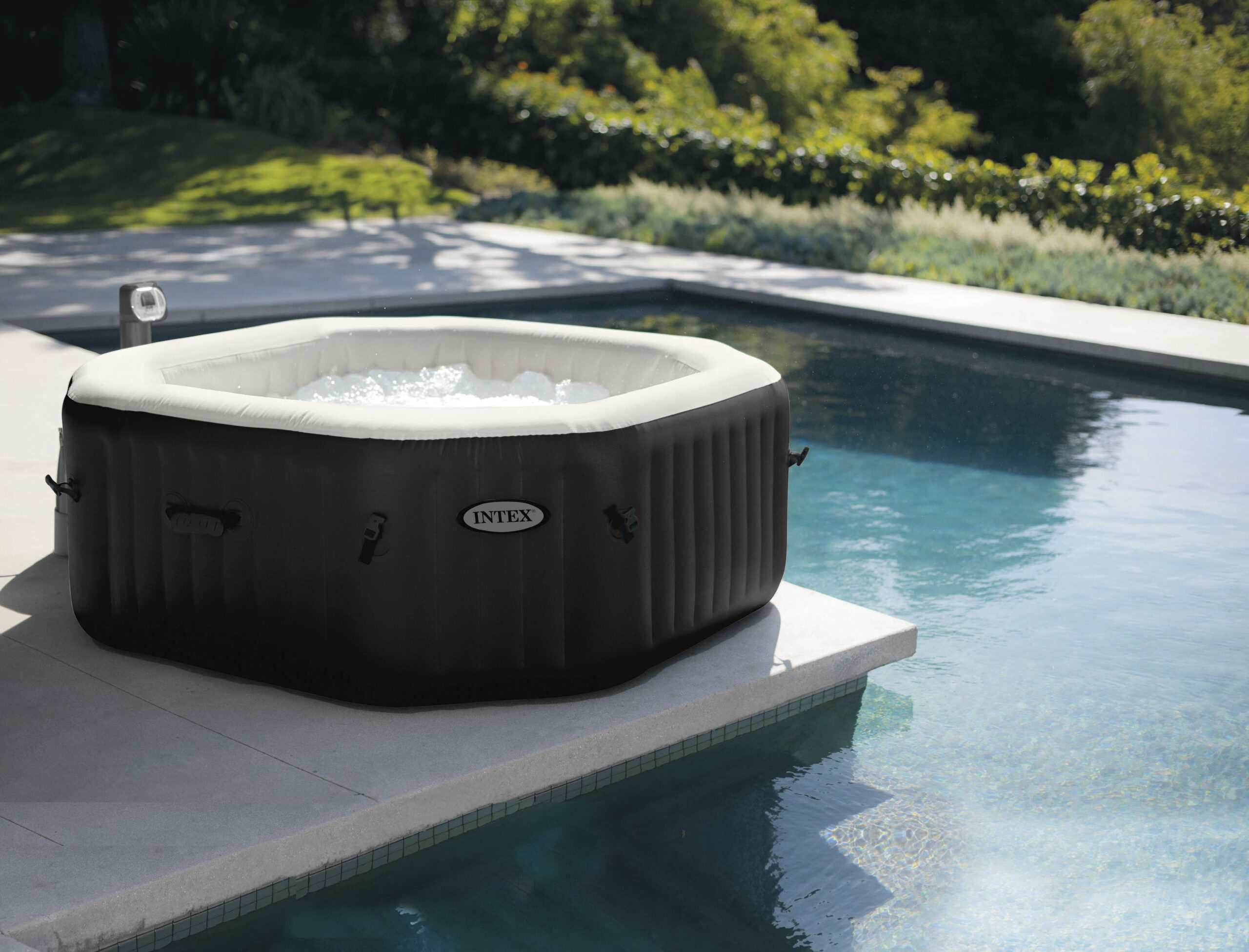 - Μετατρέψτε τον κήπο ή τη βεράντα σας σε ένα ιδιωτικό,πολυτελές κέντρο ευεξίας με το φουσκωτό Spa Intex® PureSpa Jet & Bubble Deluxe.